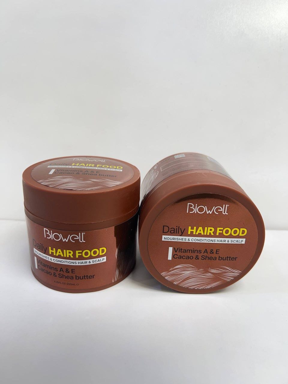 Biowell Daily Hair Food هو قناع للشعر مصمم لتغذية وترطيب الشعر وفروة الرأس. يحتوي على فيتامينات A و E وزبدة الكاكاو وزبدة الشيا.