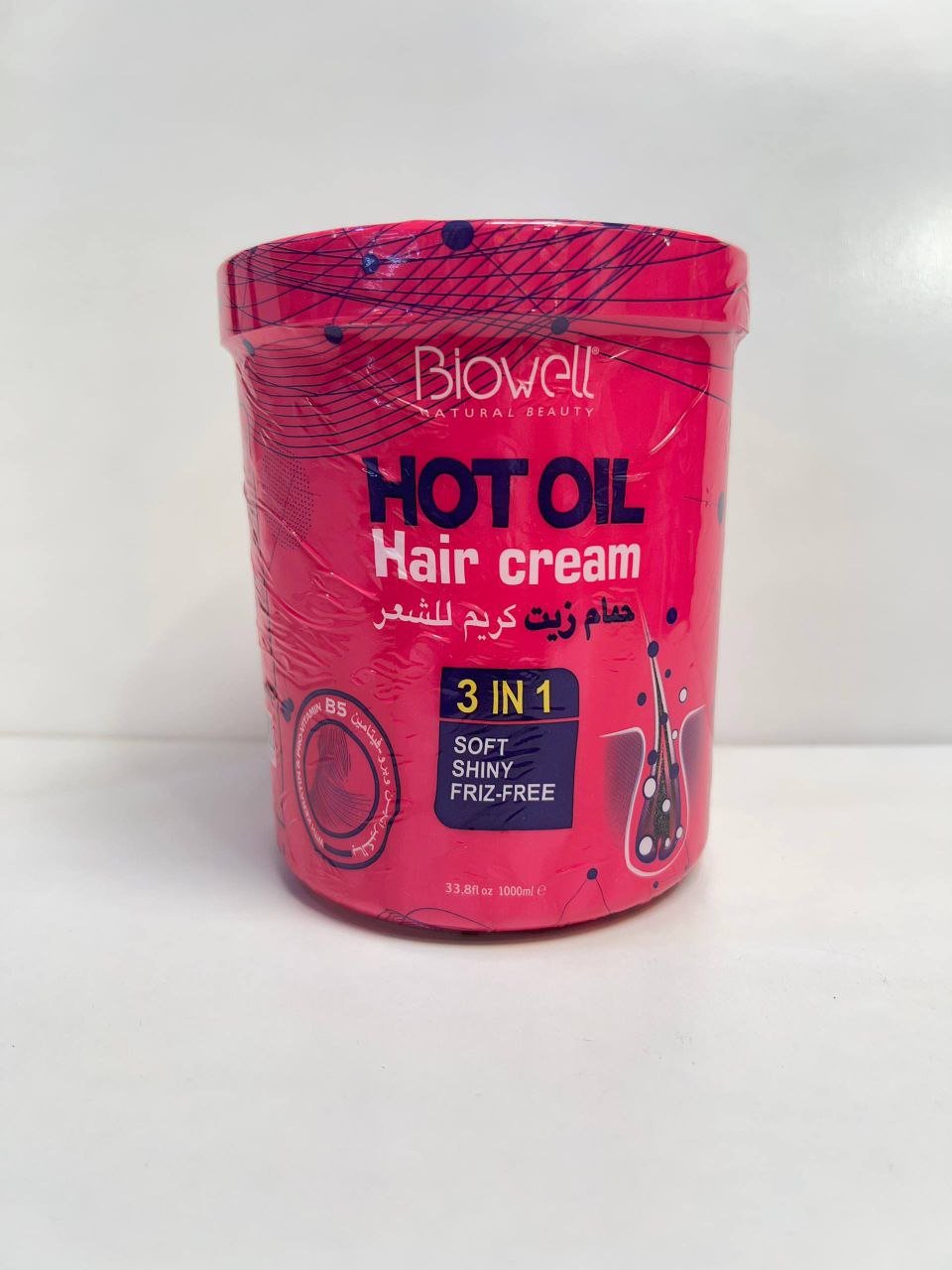 كريم “Biowell Hot Oil Hair Cream” (حمام زيت كريم للشعر) من “Biowell Natural Beauty”.